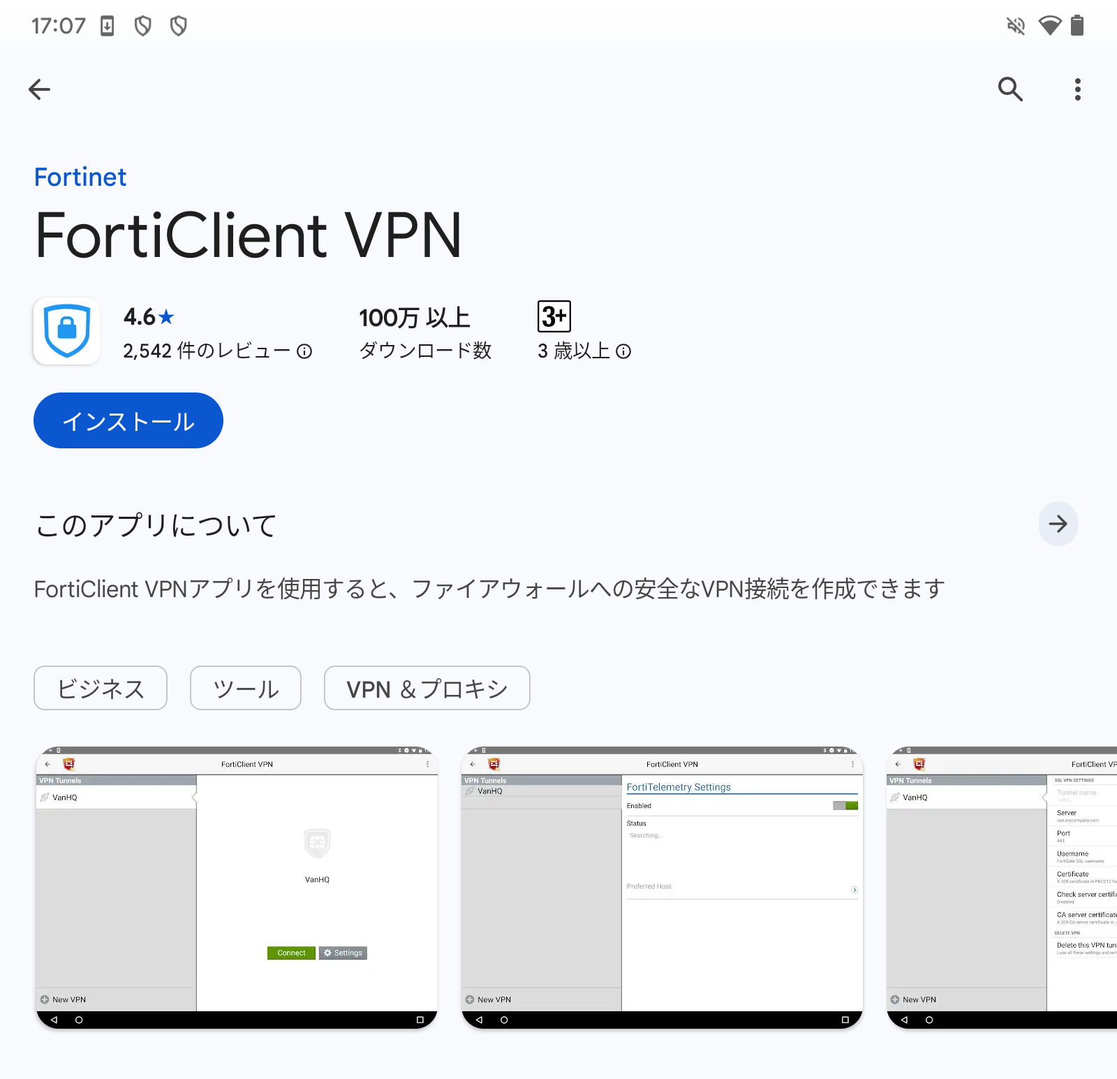 - Forticlient VPNを開きます。Google Play が開きます。