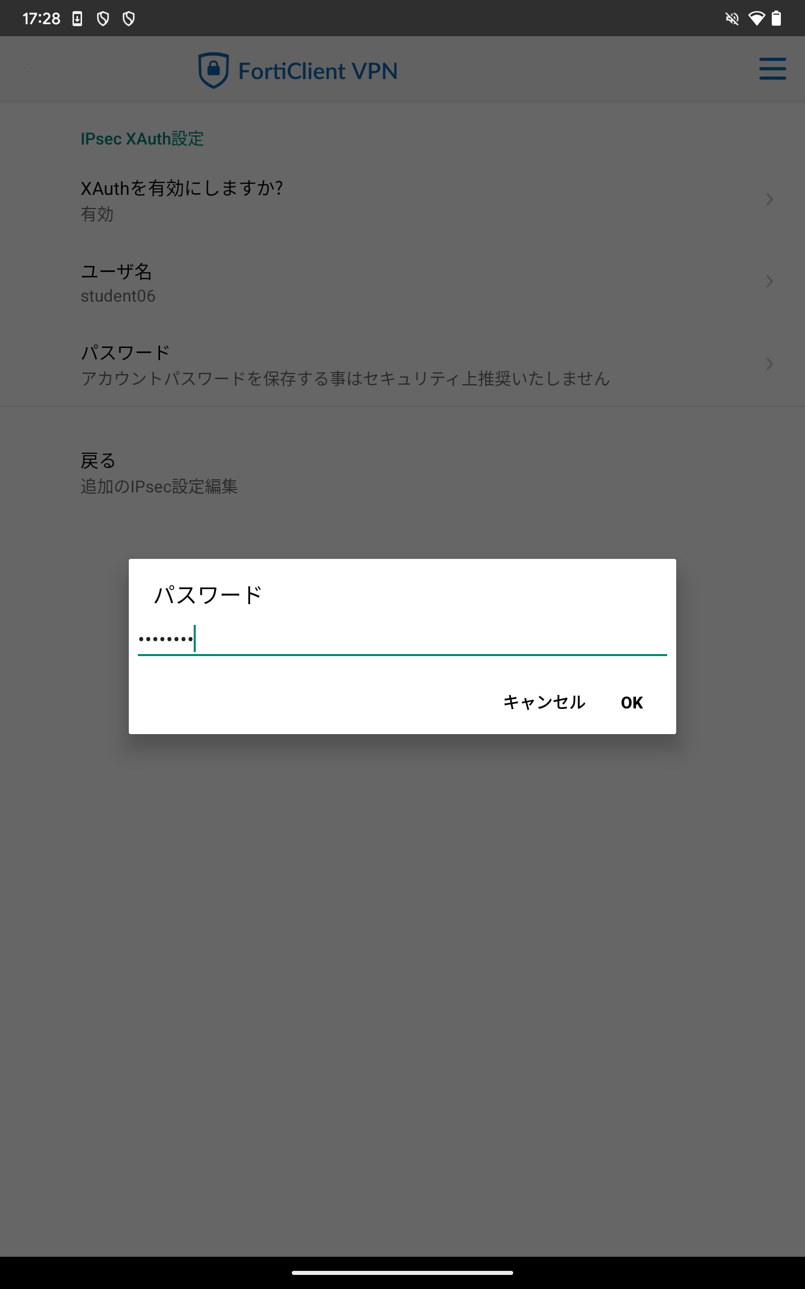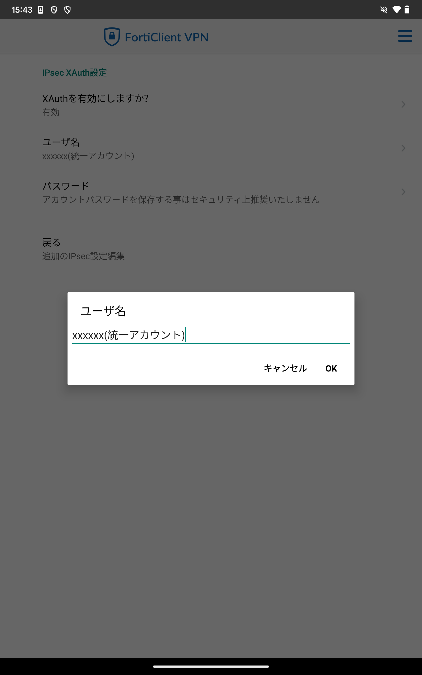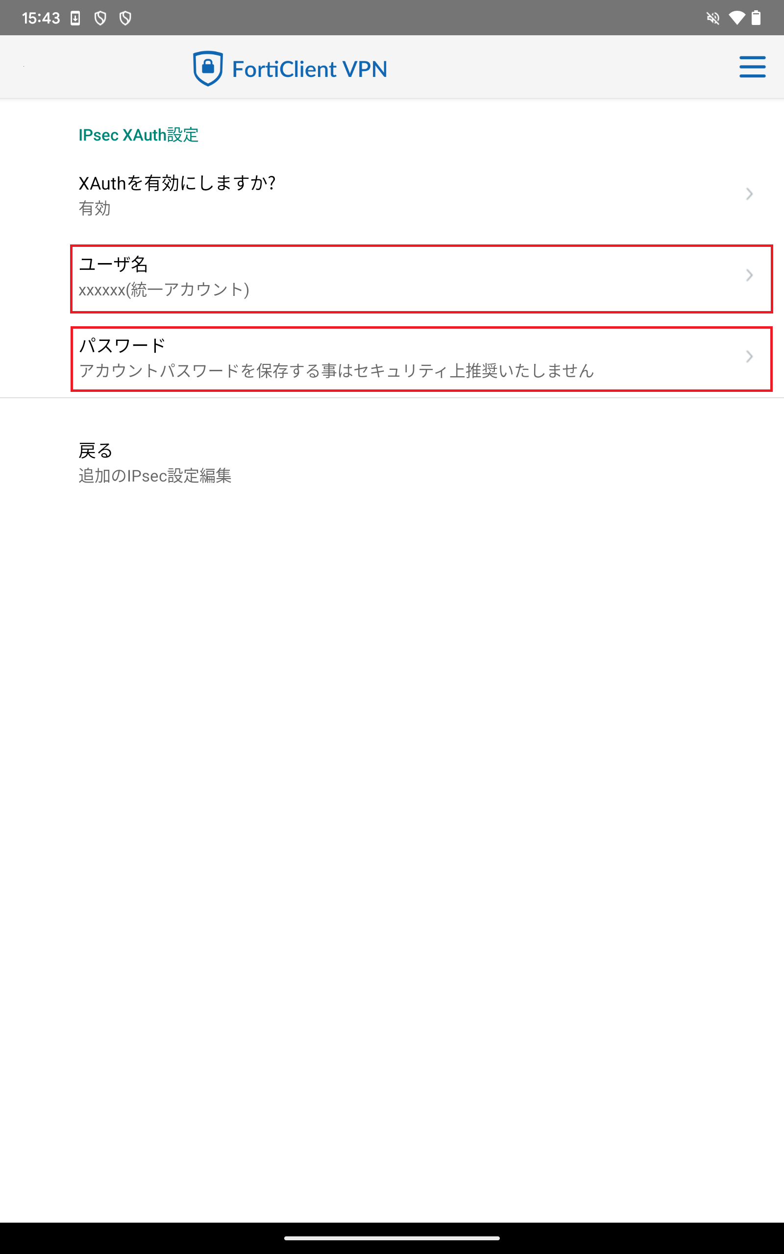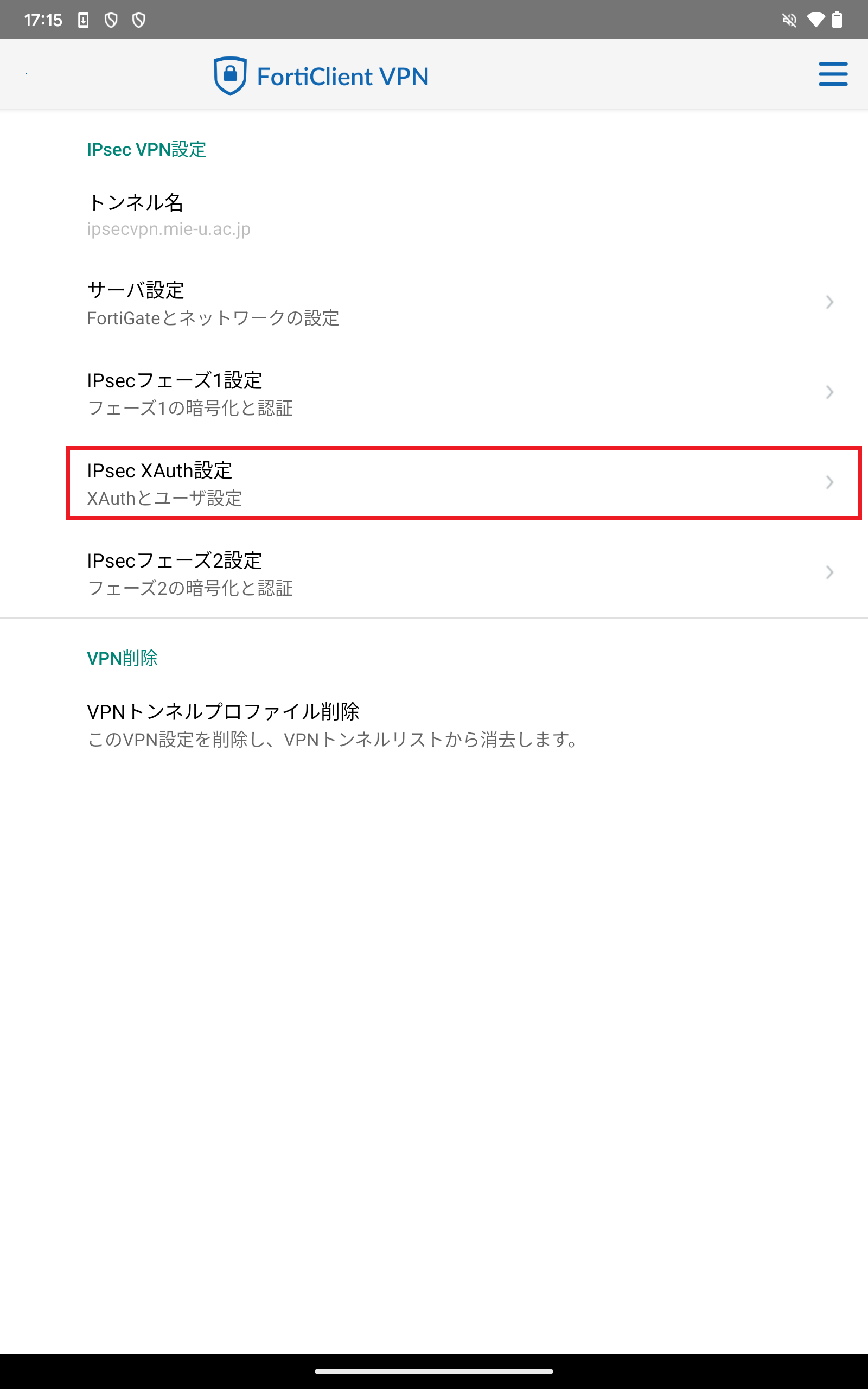 - 次に、「IPsec XAuth設定」をタップしてください。