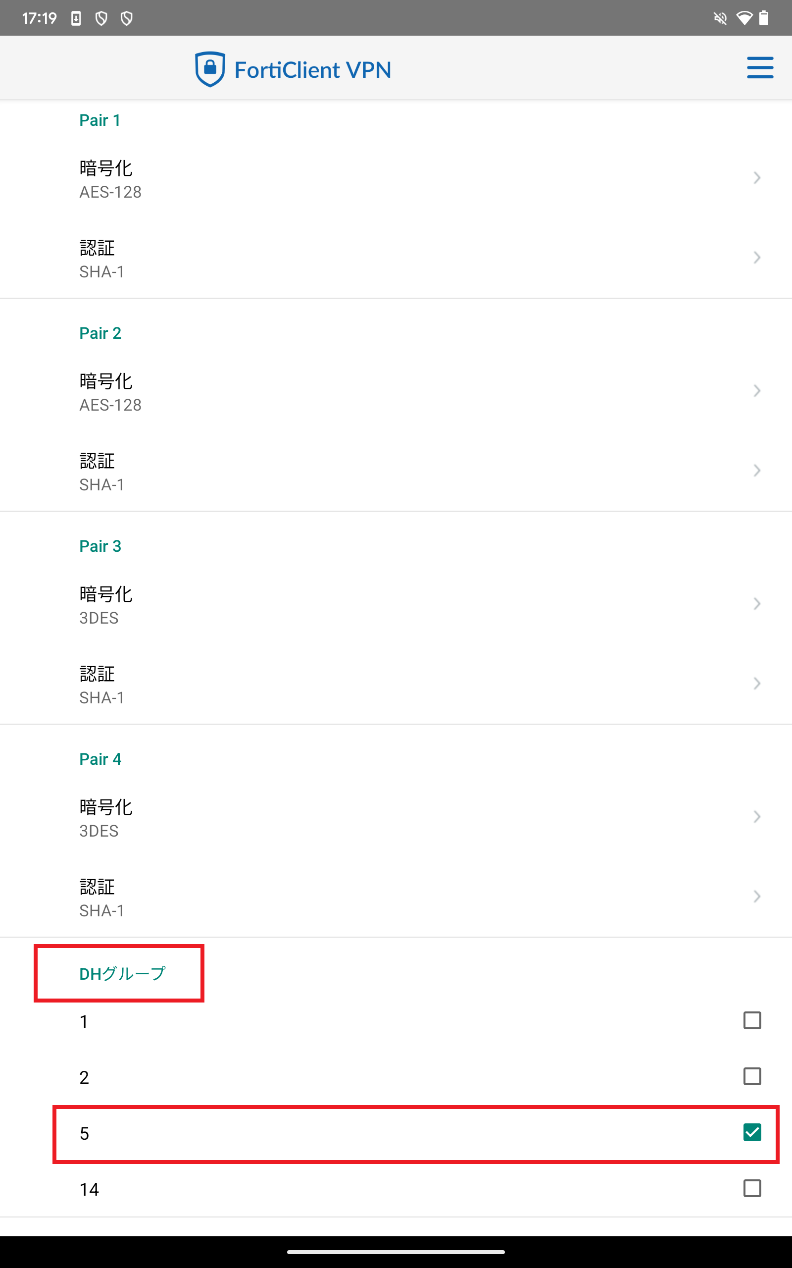 フェーズ1設定が終わり次第同様に、「IPsec フェーズ2設定」もタップして同様の内容を設定してください。