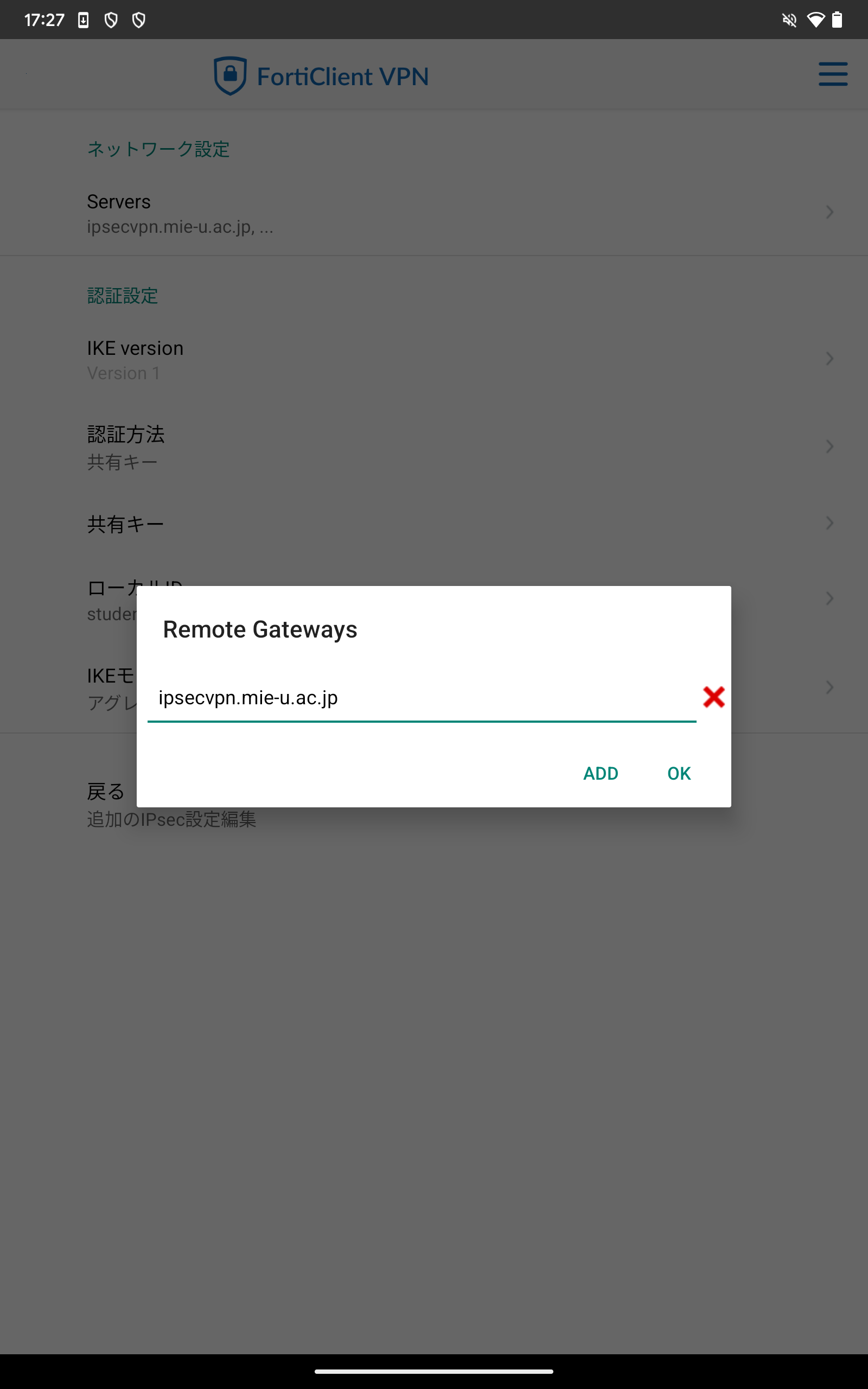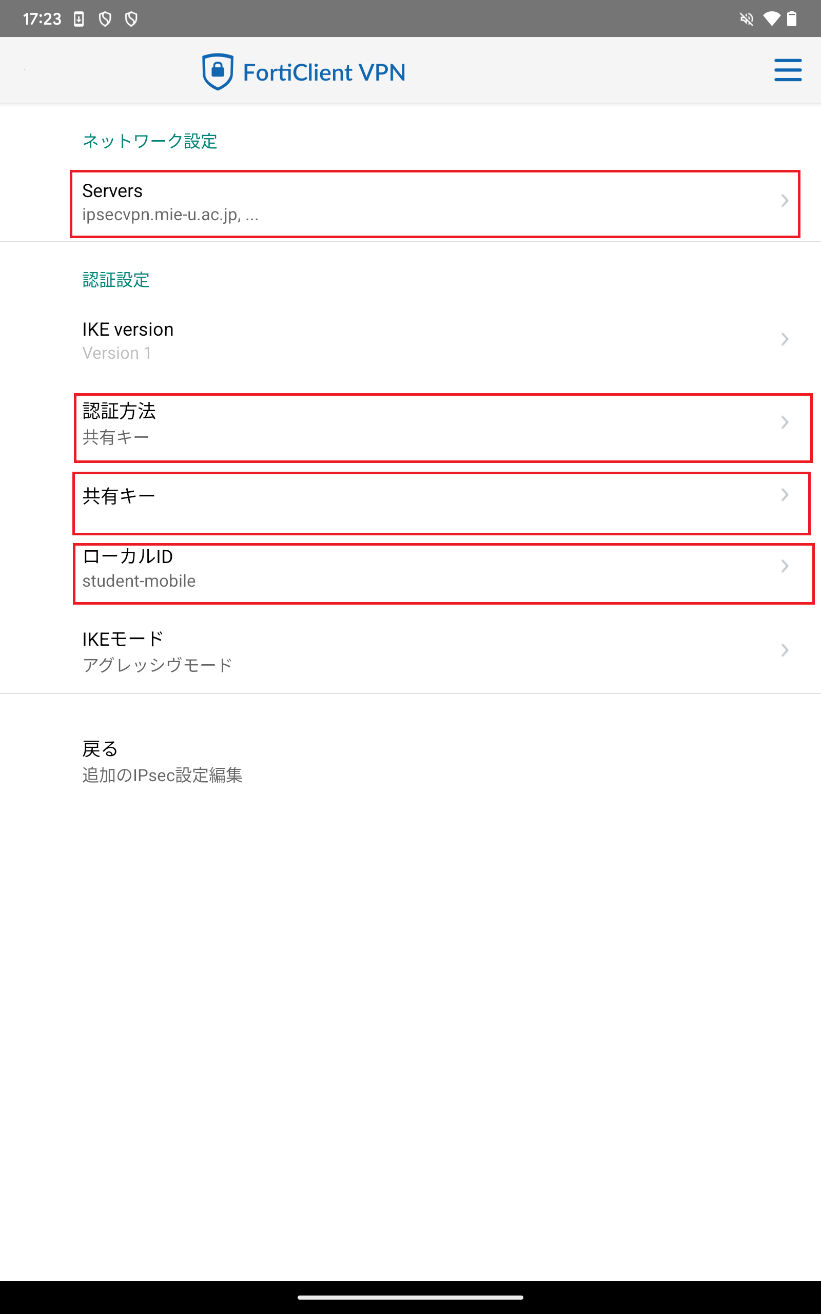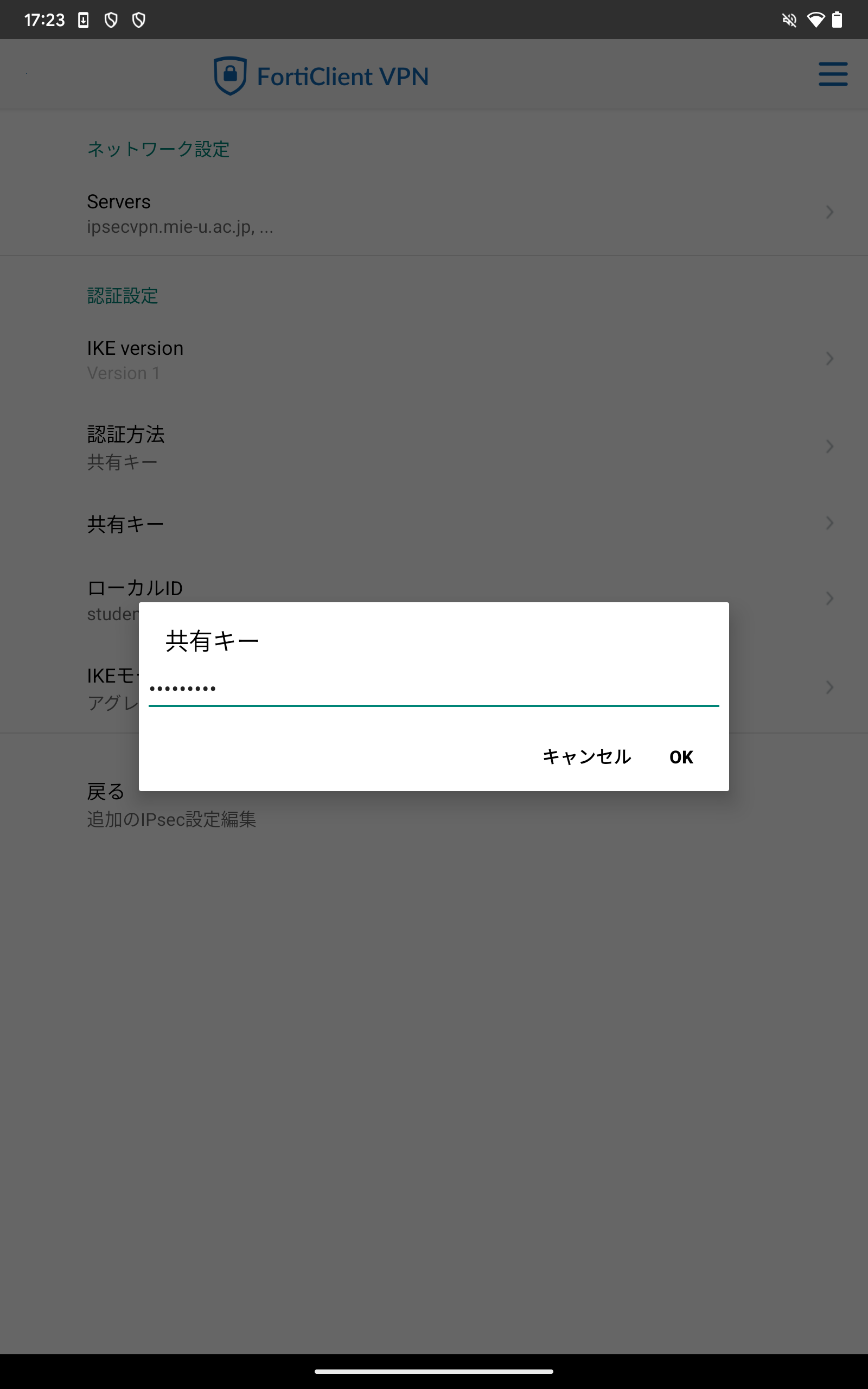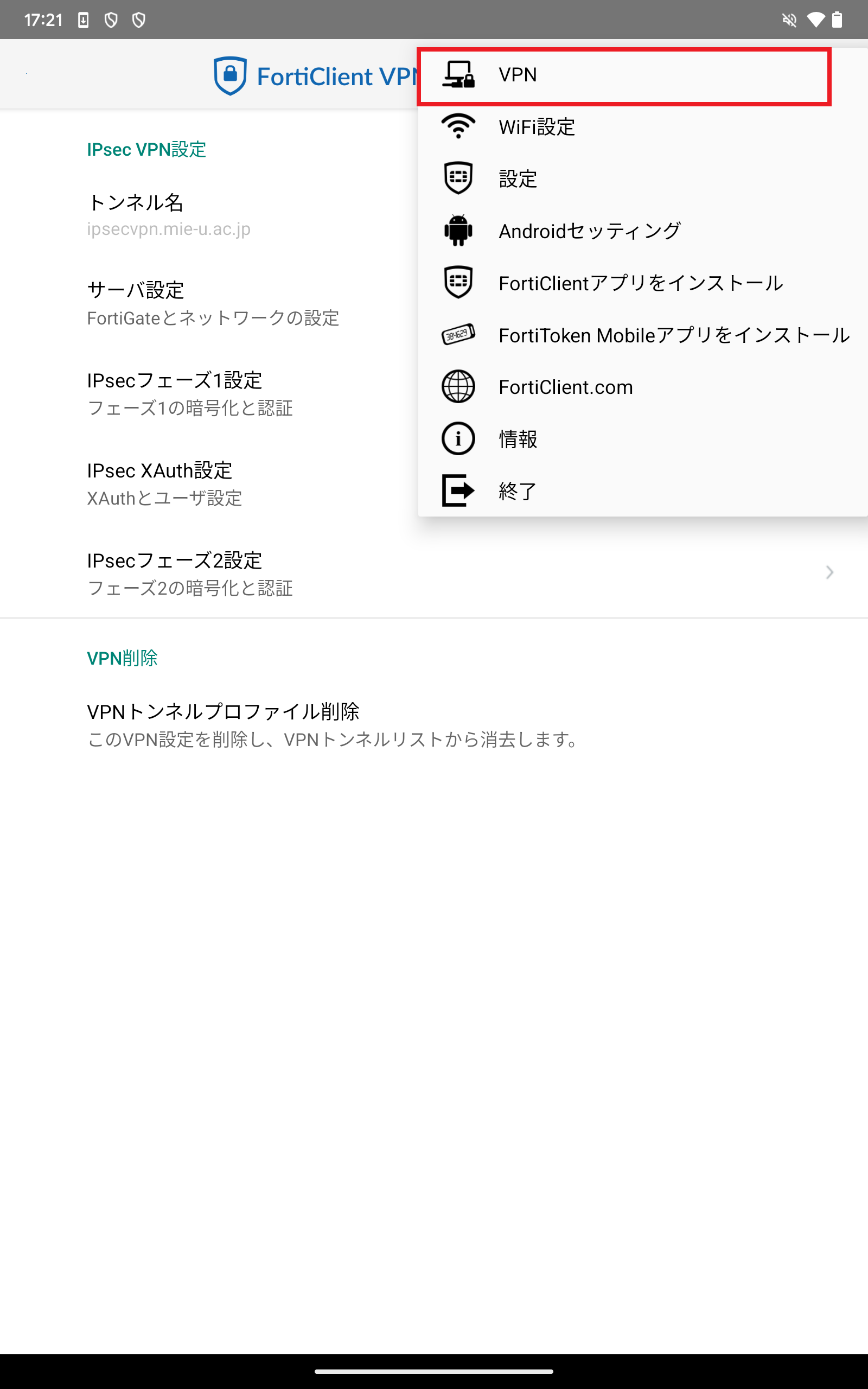 - VPN名:ipsecvpn.mie-u.ac.jp