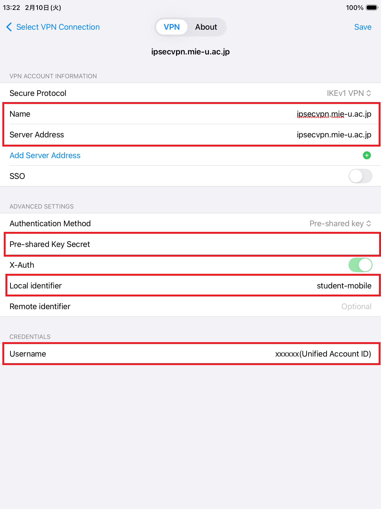 - Server Address:ipsecvpn.mie-u.ac.jp