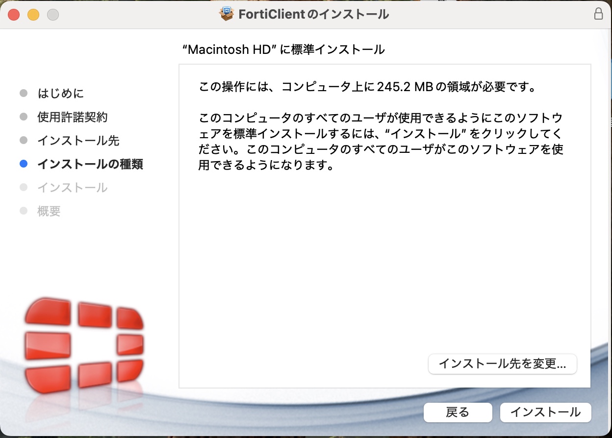うまくいかない場合、FortiClientVPNSetup_7.2.4.0850_macosx.dmgをダウンロードして、お試しください。
