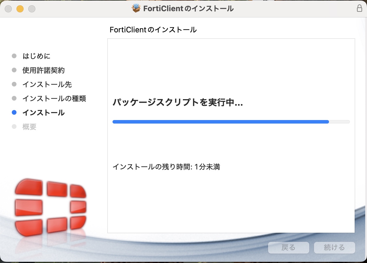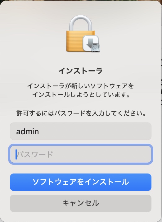 - パスワード入力後インストールが開始されます。インストールが完了するのに数分かかります。