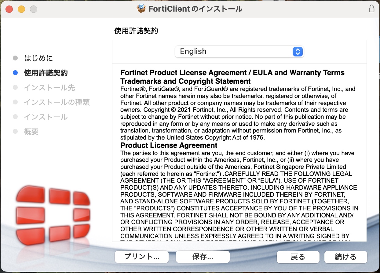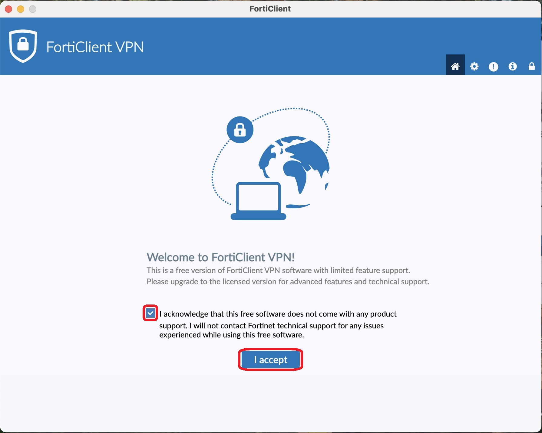 - FortiClient VPNが製品サポートを伴わないことを認め、同意してください。