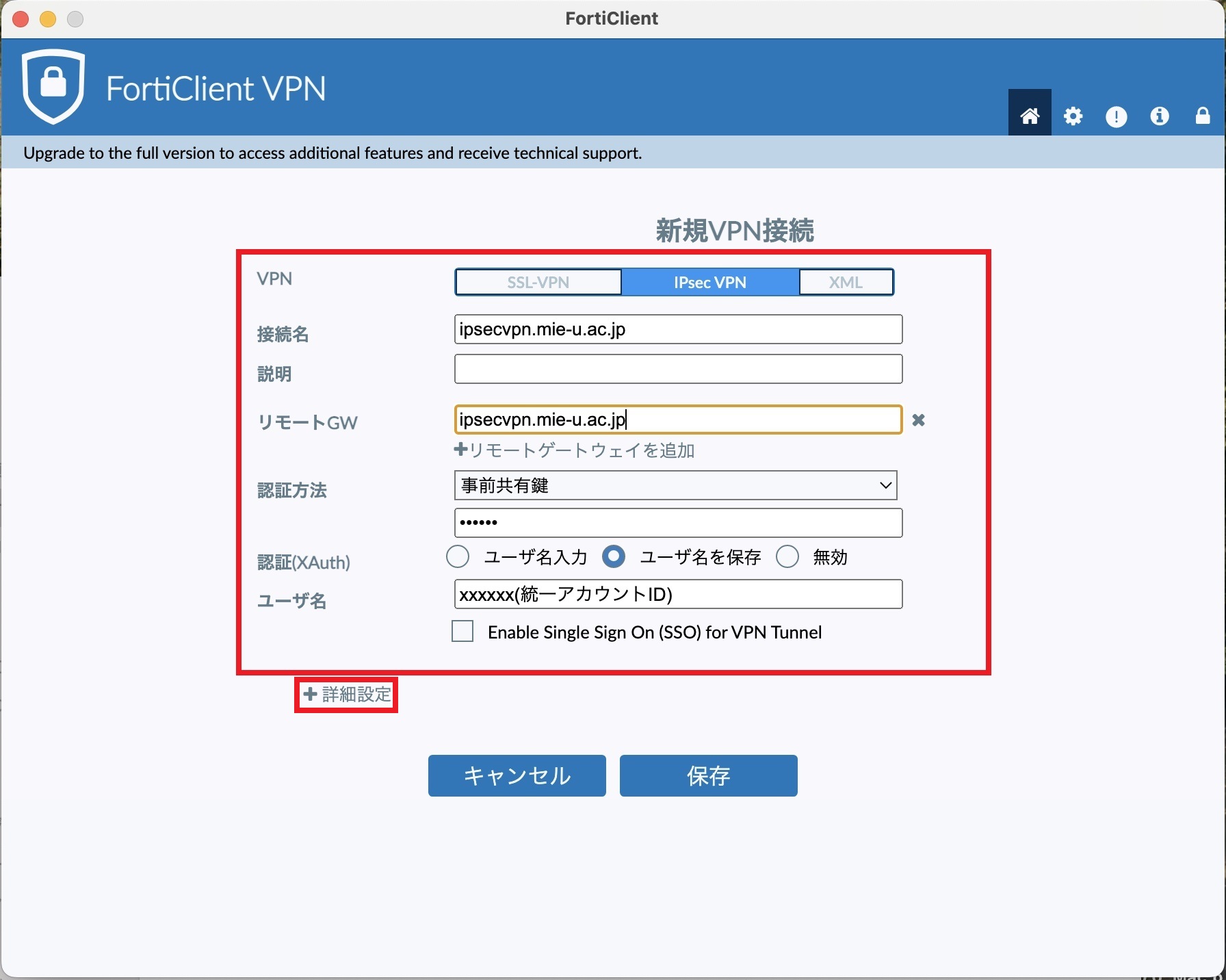 - 接続名:ipsecvpn.mie-u.ac.jp