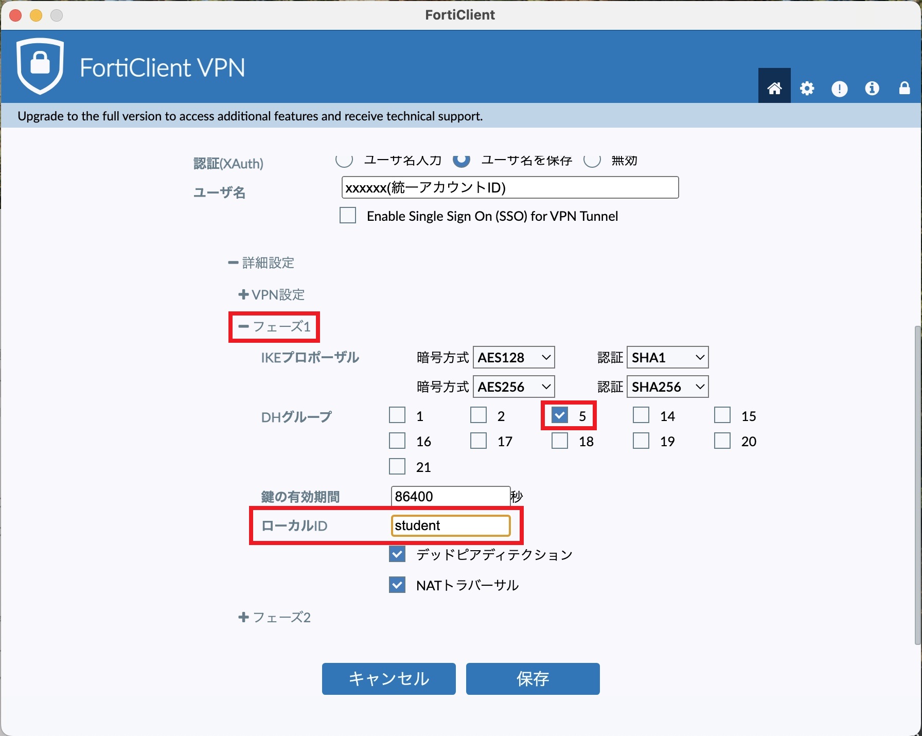 - リモートGW:ipsecvpn.mie-u.ac.jp