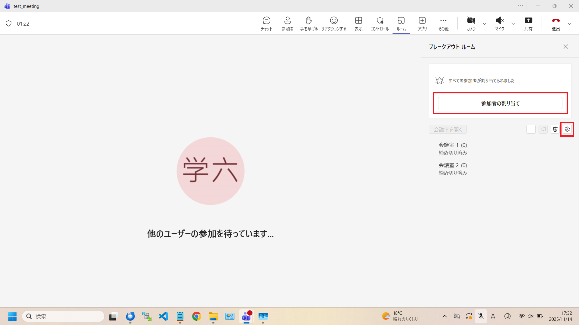 - ブレークアウトルームの名前変更や、制限時間の設定を事前に行います。