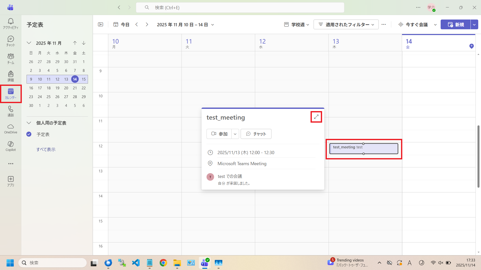 - Teamsカレンダーから、会議を選択して詳細を表示します。