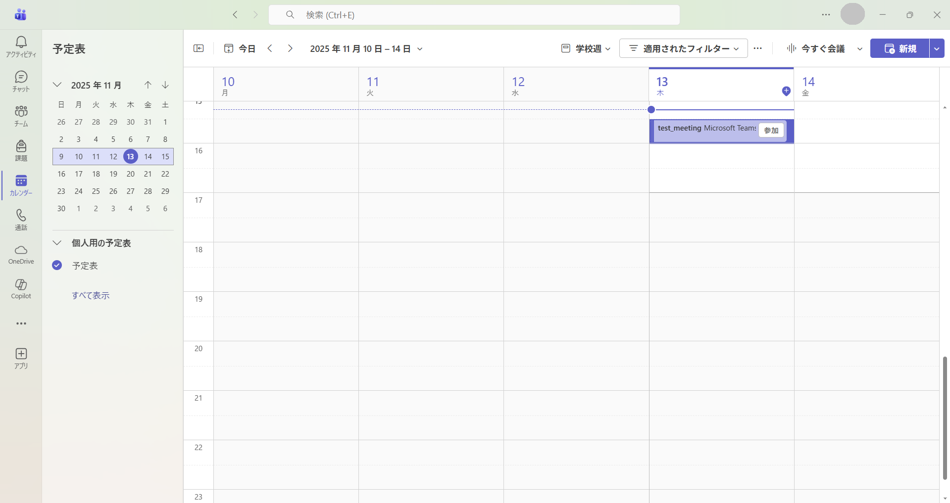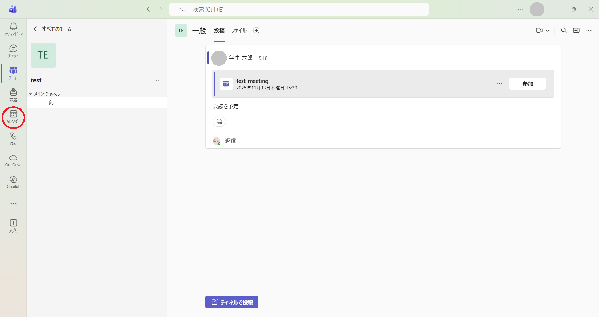 - 該当時刻に会議がスケジュールされています。この会議に参加するときは「参加」をクリックしてください。