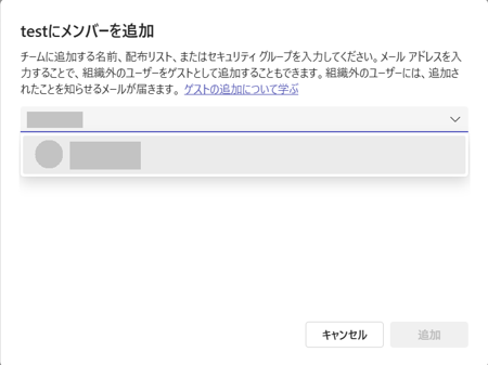 該当のユーザをクリックして、追加をクリックしてください。
