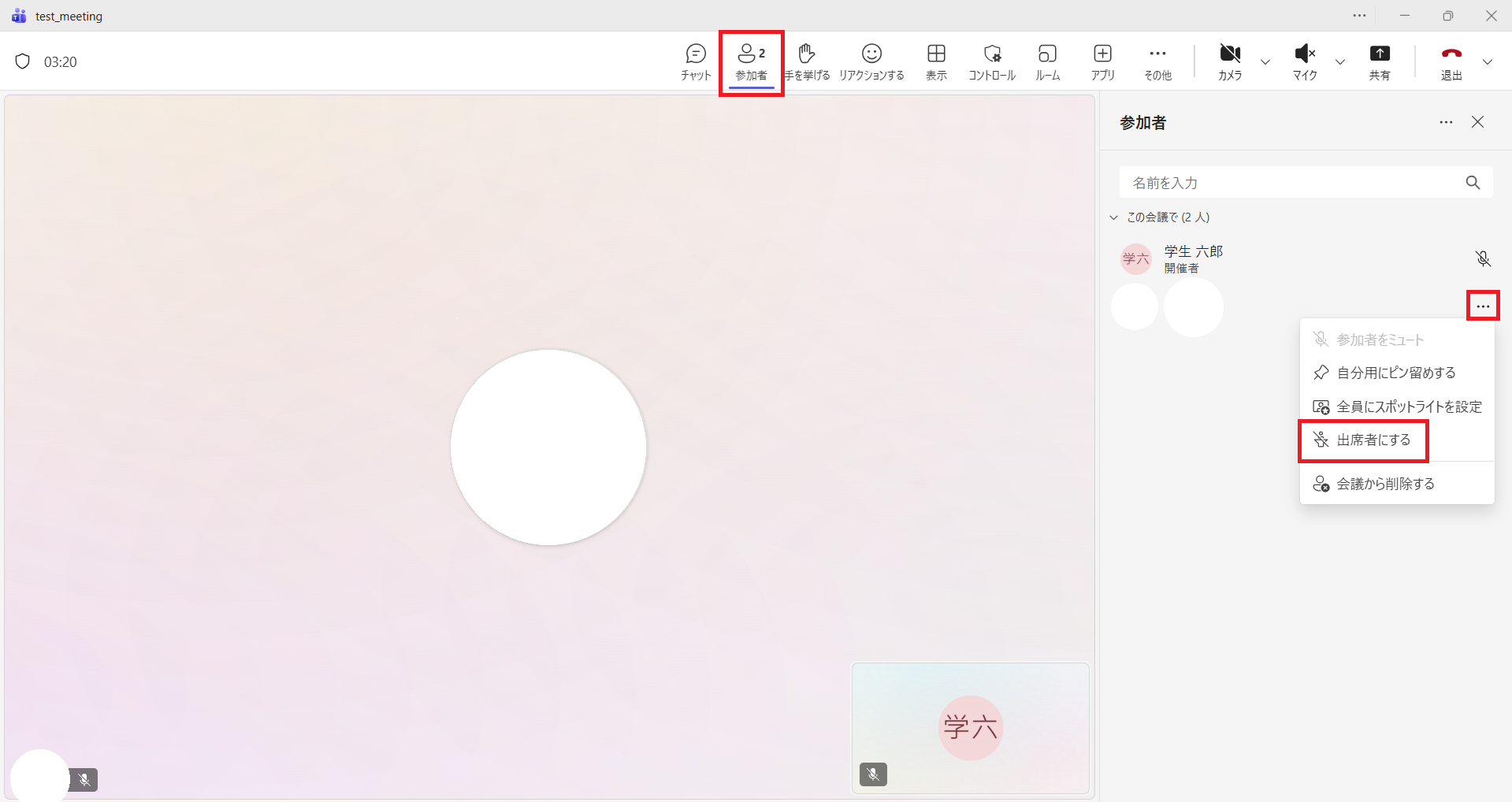 - 共有をしたい参加者の右の『…』をクリックしてください。
