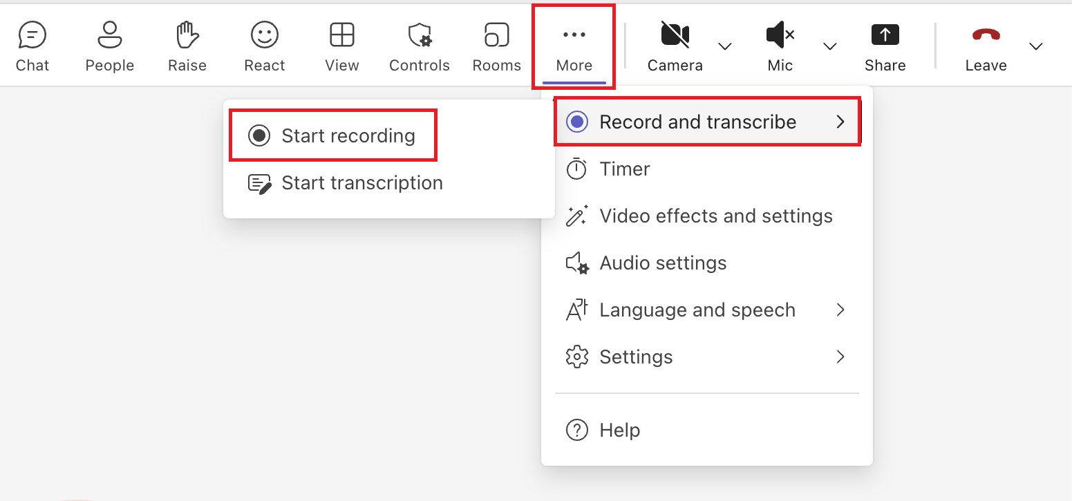There is a section called Recording and Transcription, and within that there is a Recording section. Click Start Recording here.
