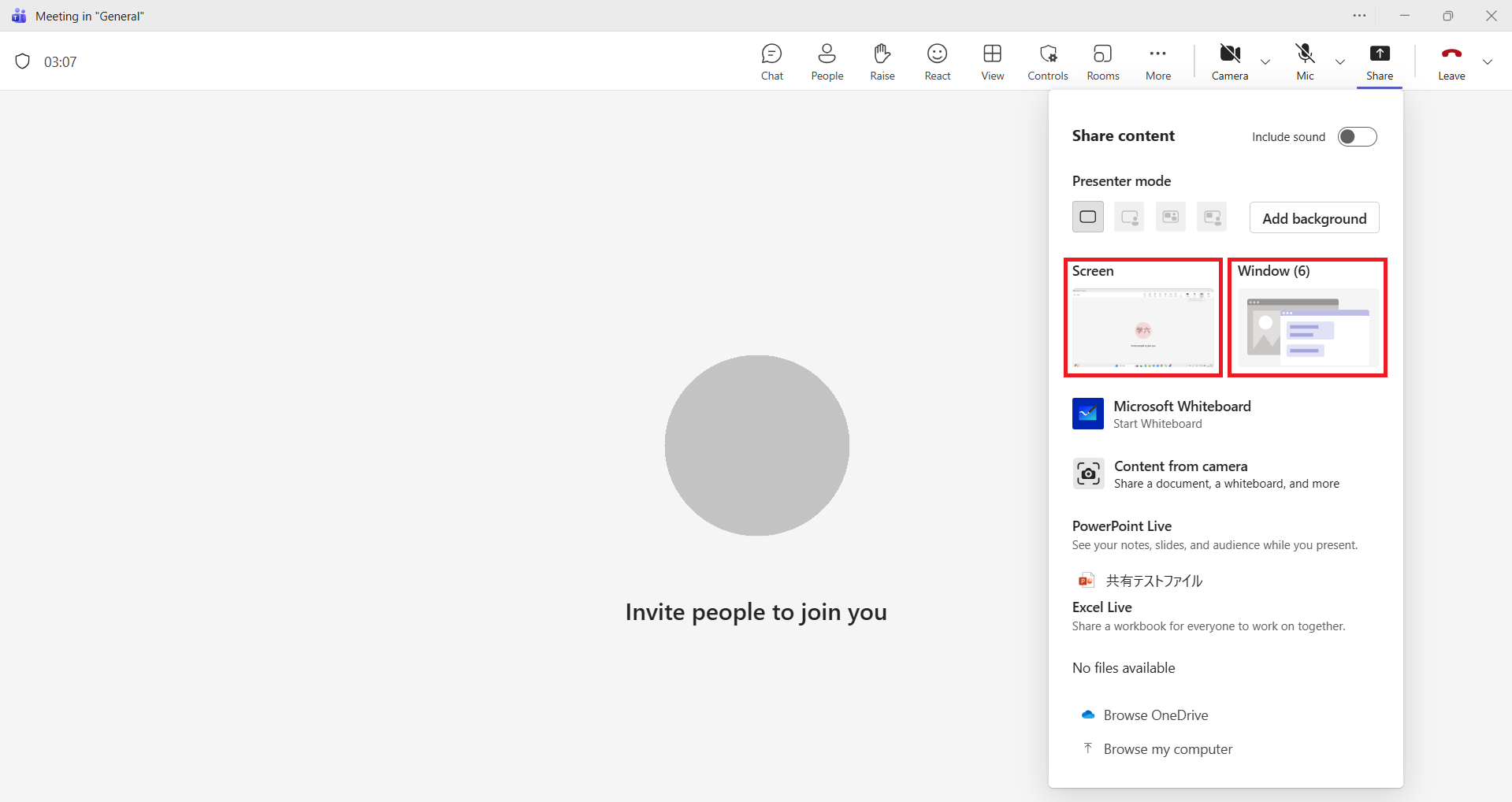 Select the documents or screens you wish to share.