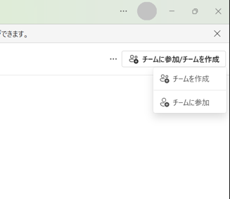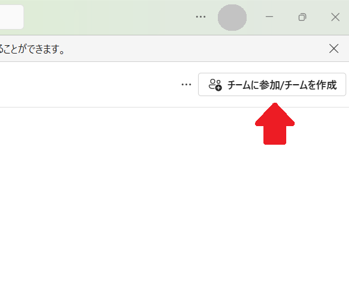 - チームはどなたでも作成が可能です。ウインドウ右上の「チーム参加/チームの作成」をクリックします。