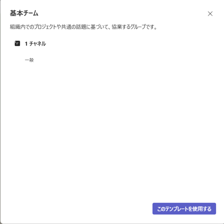 - チームの種類の選択が出てきます。「任意のスタイル」の「基本チーム」をクリックしてください。